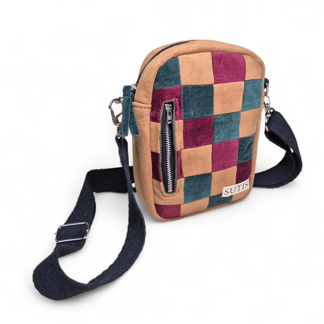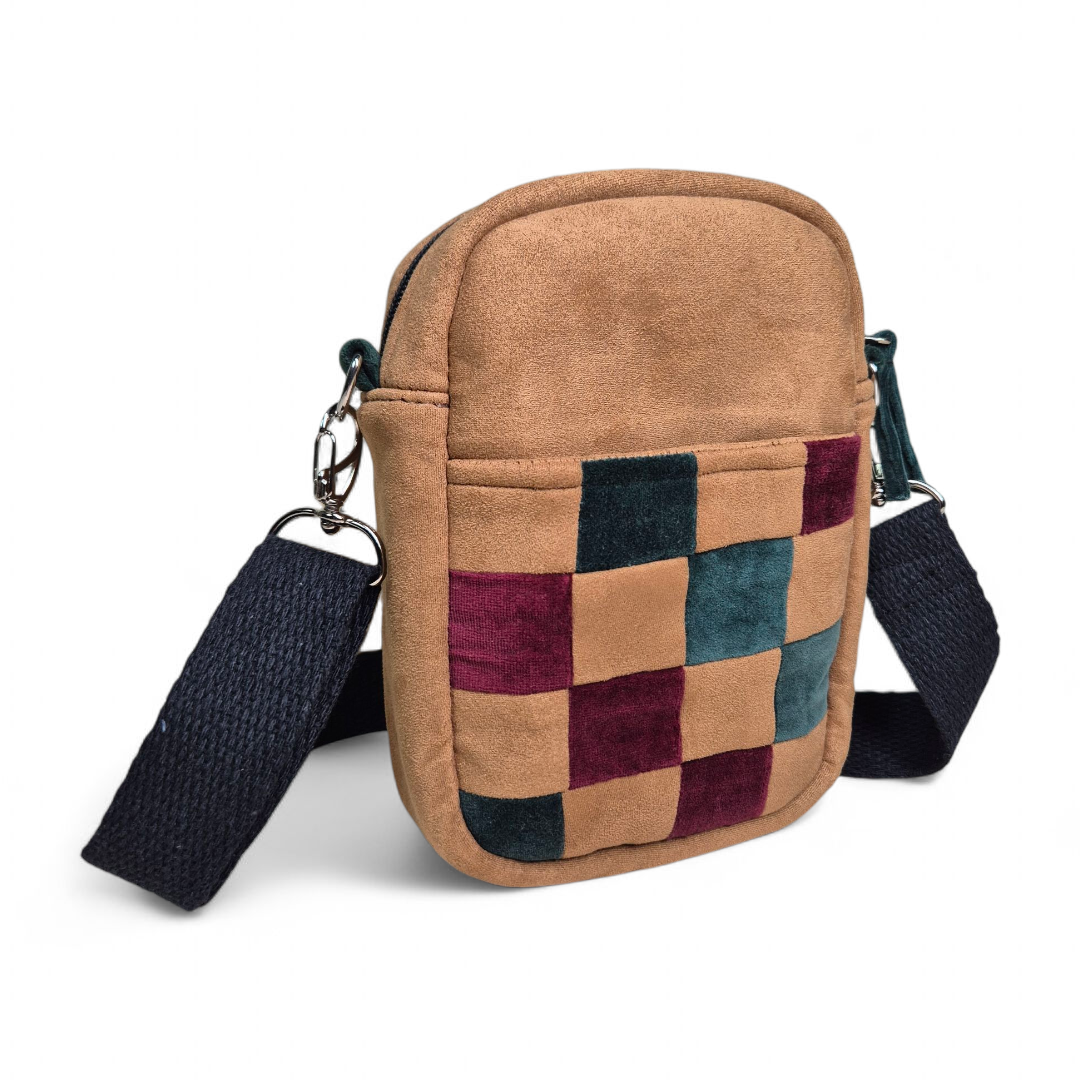 Bolsa de ombro compacta e prática. Possui alça regulável, bolso frontal e traseiro. Peça única.